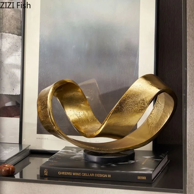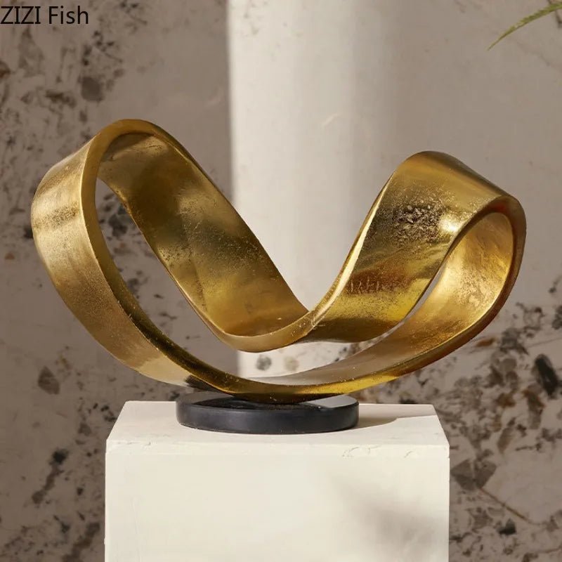 Golden Geometric Abstract Statue - Luxury Home Decor