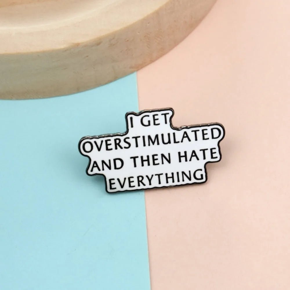 Sometimes you just need people to know. This pin speaks the truth about overstimulation in a way that's both honest and a little humorous. Wear it as a badge of self-awareness, a conversation starter, or a gentle warning when you're reaching your limit.