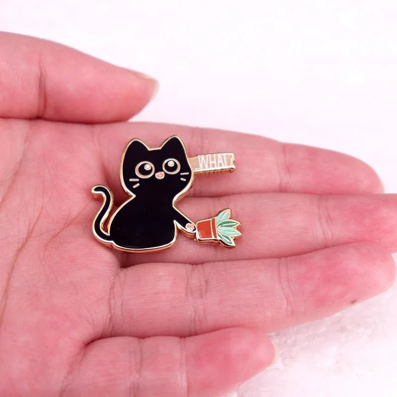 Add a touch of mischief to your style with this naughty black cat enamel pin. Perfect for cat lovers who appreciate their feline friends' playful personalities!