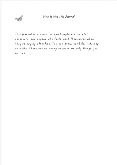 This journal is ideal for children, teens, and adults who enjoy observing nature, recording ideas, or developing a deeper relationship with the environment around them.